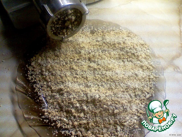 Миндаль прокрутить через мясорубку. -
