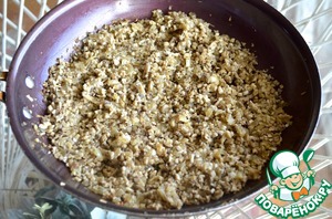 5. Луковицу порезать мелкими кубиками и готовить до прозрачности, добавить мелко рубленные грибы, посолить, поперчить и тушить 15 минут до выпаривания лишней жидкости.
