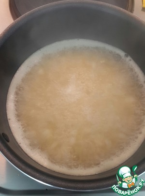 Как только масло растопиться - влить 250 мл горячего бульона, посолить, поперчить и варить под крышкой на медленном огне 15 минут.