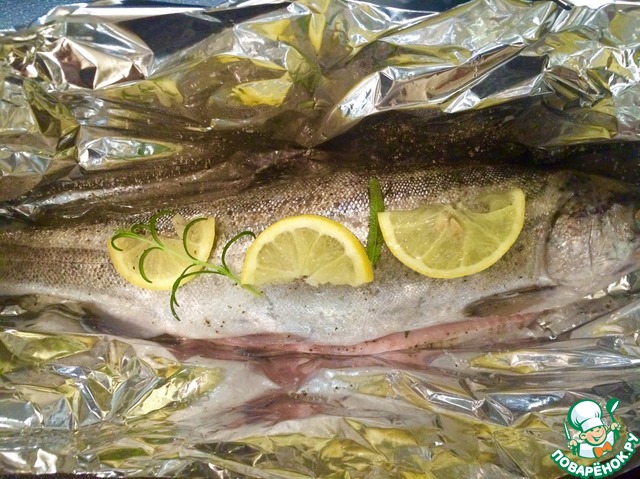 - Рыба (у меня речная форель, одна рыбка-одна порция) — 2 шт