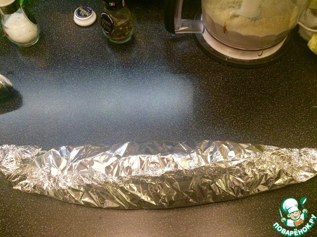 Плотно закрываем все края. У нас должна получиться вот такая колбаска швом вверх) Ставим нашу рыбку в духовку, разогретую до 180 градусов Цельсия, на 40 минут. Через указанное время духовку выключаем и оставляем там рыбу еще на 10 минут.