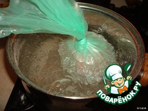 Вынув филе из холодильника, переставляем его в пакет, и плотно завязываем в узел.