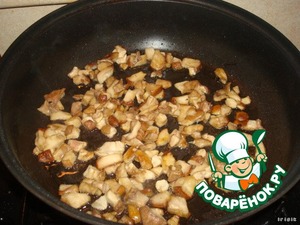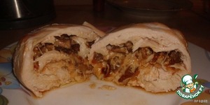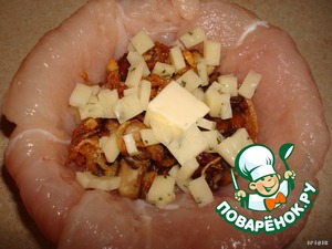 В середину кладем начинку: грибы с луком, в серединку масло и сыр.