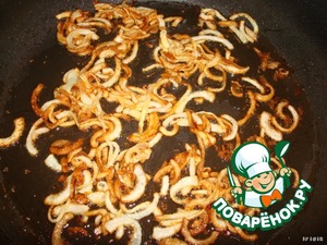 Лук жарим пока не начнет золотится, добавляем 1 столовую ложку сахара. Чтобы лук был слаще.