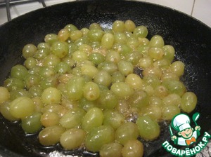 На раскалённую с маслом сковороду выкладываем виноград и на