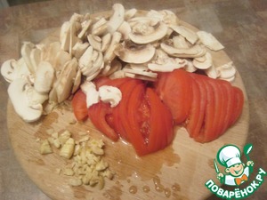 Помидоры, шампиньоны-нарезать, чеснок-измельчить
