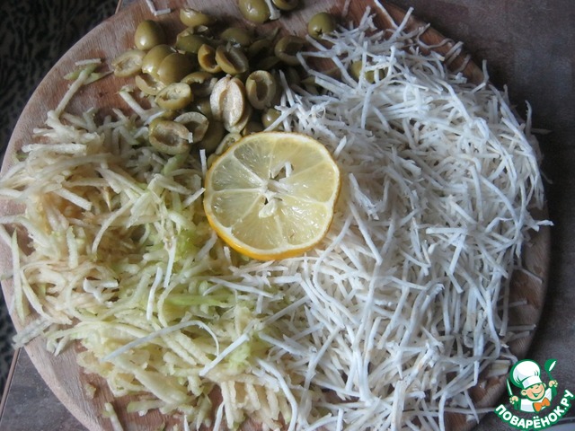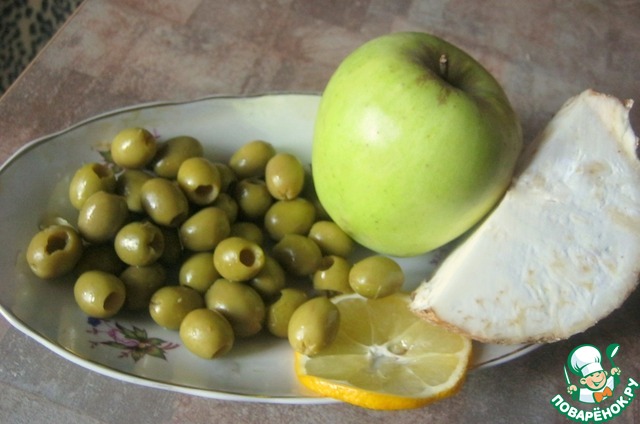Яблоко должно быть сочным-заправляем только соком лимона и его же соком