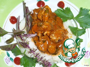 Я очень люблю куриные потрошки (печеночка и сердечки) и готовлю их довольно часто, предлагаю вариант острых потрошков, ужасно вкусная подлива и печеночки с сердечками.