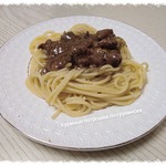 На смеси растительного и сливочного (в оригинале животный жир) масел обжарить потрошки (до испарения воды), добавить порезанную луковицу, обжаривать минут пять, положить томатную пасту, перемешать и на небольшом огне протушить еще 5 минут (помешивать). -
