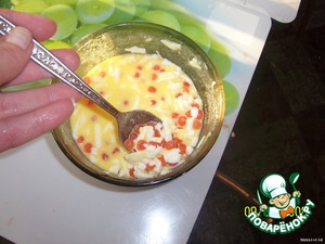 Приготовим другой соус. Растопим в мисочке грамм 30-50 сливочного масла, добавим туда лимонный сок и одно яйцо, которое для простоты просто потрем на терке. Добавим икру.