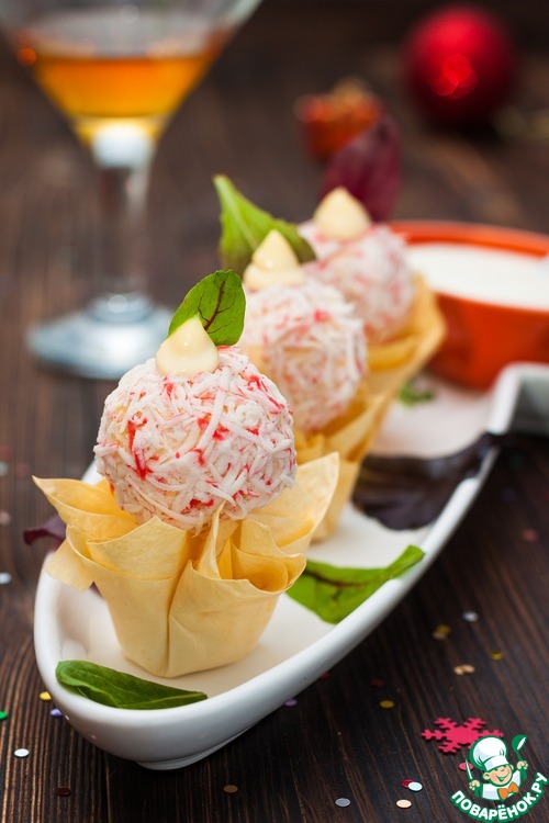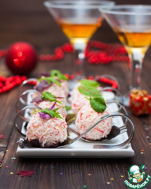 Рецепт «Салат-закуска из крабово-сырных шариков»: