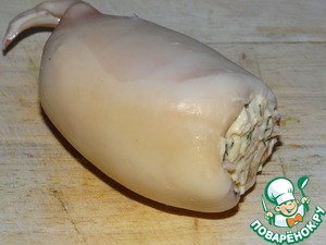 Кальмары очистить от пленки и внутренностей, отрезать плавнички;