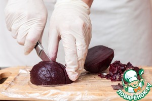 * Поскольку свекла сильно красит руки, я надела перчатки, чтобы потом не пугать вас своими "кровавыми" пальцами)))
