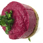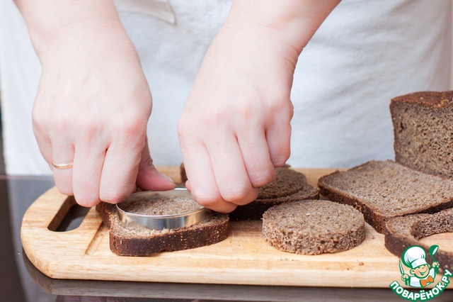 Свекольное пюре должно немного схватиться, прежде чем выкладывать его на хлеб, поэтому вырежьте пока круглые заготовки из ржаного хлеба.