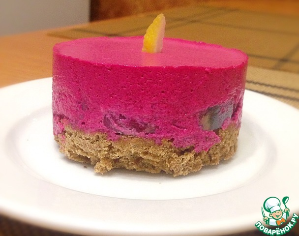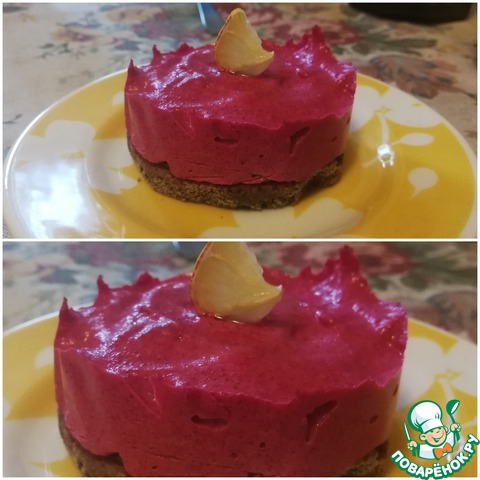 Влить лимонный сок и попробовать свекольное пюре на вкус. Оно должно быть приятного кисло-сладкого вкуса. Желатин подогреть (не доводить до кипения!) и влить в пюре. Снова включить блендер и взбить до гладкой нежной массы.