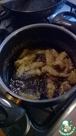 Обмакнула во взбитый солью белок (лучше в яйце, но я утилизировала то что осталось от предыдущей готовки)