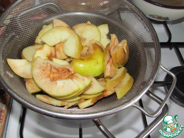 Варим максимум 2-3 минутки, чтобы яблоки стали гибкими, но ни в коем случае не разварились.
