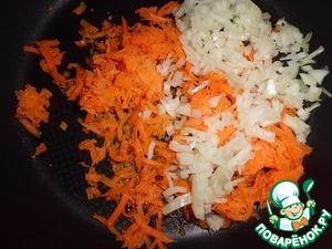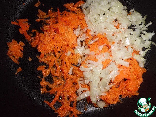 Морковь и лук обжариваем на растительном масле, до полуготовности. Параллельно чистим картошку и ставим вариться.