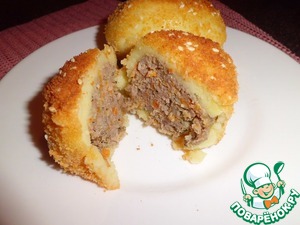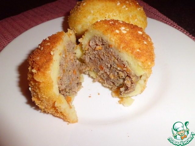 Тонким слоем наносим его на наши "котлетки", окунаем во взбитое яйцо, после в панировочную смесь.. -