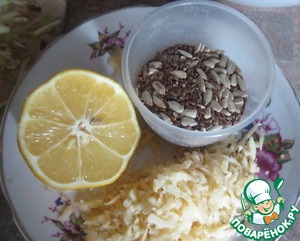 в масло выдавливаем лимон, добавляем чеснок, семечки -
