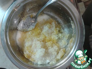 Добавить масло, нарезанное мелкими кусочками и непрерывно помешивая, прогрейте на слабом огне до растворения сахара.