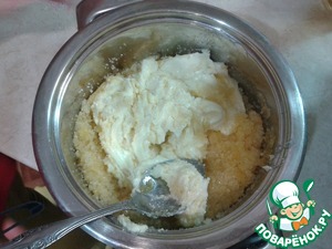 Если творог слишком влажный, отожмёте под прессом, если нет, то сразу начинаем перетирать через сито.