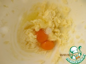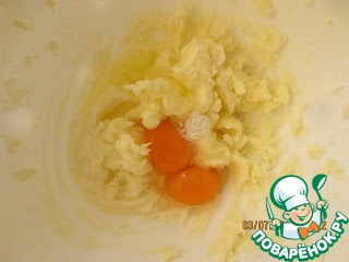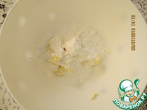 Масло смешать с сахарной пудрой и взбить