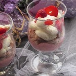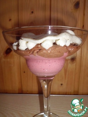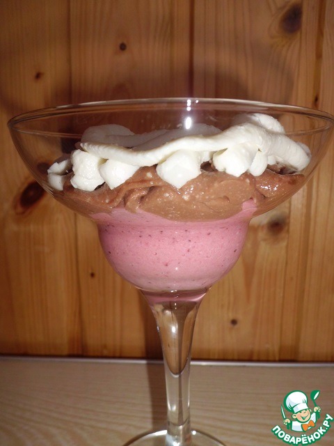 В высокий стакан (любой удобный для вас) нижним слоем выкладываем клубнично-творожную массу. Она самая жидкая, поэтому просто заполняем ею дно.