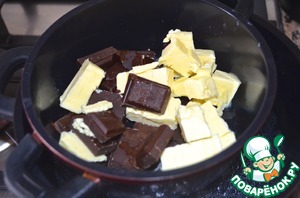 2. Растопить шоколад с водой и маслом на паровой бане, периодически помешивая.