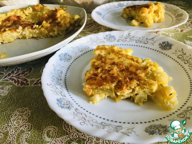 Нечто среднее, но очень вкусное и нежное, между запеканкой и омлетом со спагетти. Хороша как в горячем, так и в холодном виде.