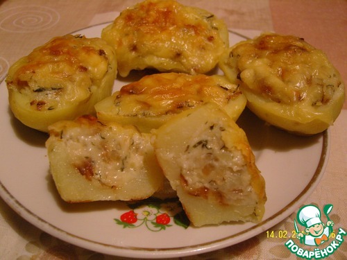 Известно, что картошка, отваренная в «мундире» или запеченная в духовке наиболее полезна для нашего организма. Этот рецепт содержит эти два способа приготовления картошки и к тому же эффектно выглядит на столе.