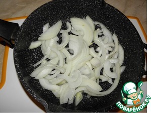 Лук нарезать и обжарить, с минимальным количеством масла