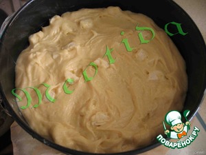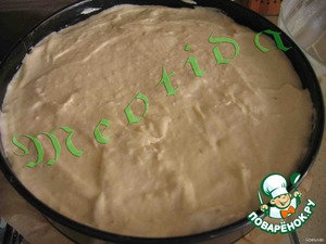 Форму разъемную хорошо смазать маслом, застелить дно бумагой. Выложить половину сметанного теста и разровнять