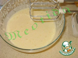 миксером взбить сметану с яйцами, сахаром и ванильным сахаром -