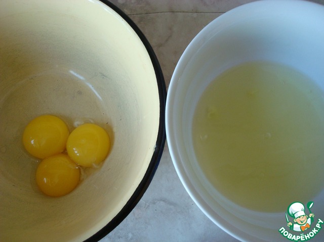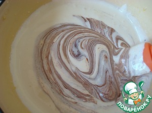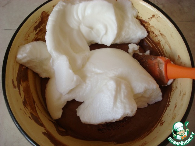 • Ввести белки в тесто и аккуратно перемешать, поднимая тесто ложкой снизу вверх