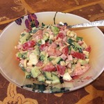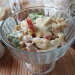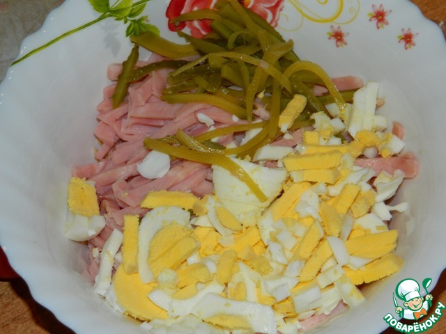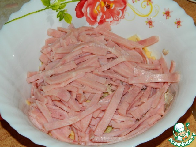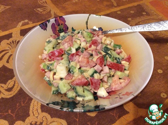 Салат из куриного мяса, ветчины, овощей и сыра получается очень вкусным и сытным. Вполне может занять своё место на праздничном столе.
