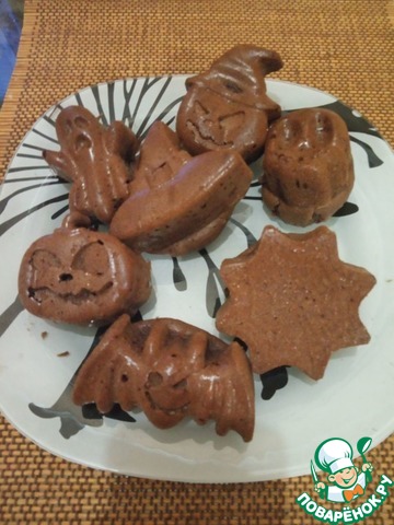 7) Лапки «мишек» залить тестом с какао, формочки залить тестом на 2/3