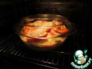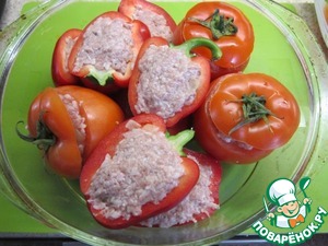 Фаршируем наши овощи, укладываем в жаропрочную посуду.