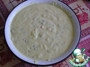 Дно противня смазать маслом, вылить тесто. Поместить в разогретую духовку и запекать до готовности