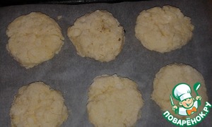 Таким образом сделать 12 штук, уложить на застеленный бумагой противень и выпекать при 175 градусах примерно по 15 минут с каждой стороны