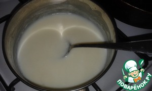 Пока биточки жарятся, готовим кисель. Для этого поставить закипать 200 мл молока, добавив сахар и немного ванилина.
