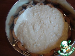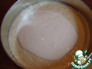 Сверху аккуратно смазываем сметаной (можно сметана + сахар). -