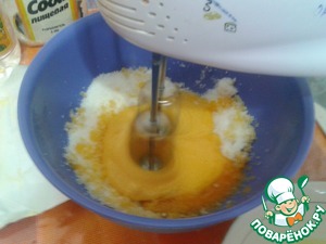 Добавляем размягченное сливочное масло. Взбиваем миксером.