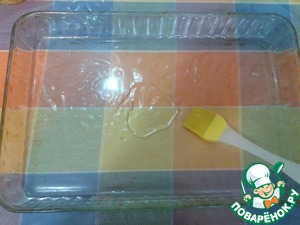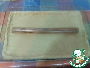 Пролежав в морозилке, тесто стало очень тугим. Разравниваем его по форме руками и скалкой, придавая ему не большие бортики.