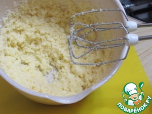 В муку добавить масляную смесь, перемешать лопаточкой и в два приёма влить молоко. Тесто вымесить руками. Готовое тесто получается эластичным и податливым.
