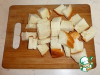 Кусочки батона порежем крупно. Я режу так: вдоль и на три части. То есть, каждый кусочек на шесть частей. |