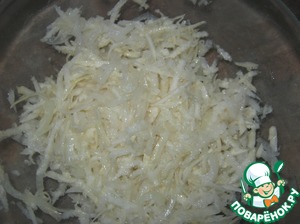 Дайкон слегка перетираем с солью и подсолнечным (оливковым) маслом -