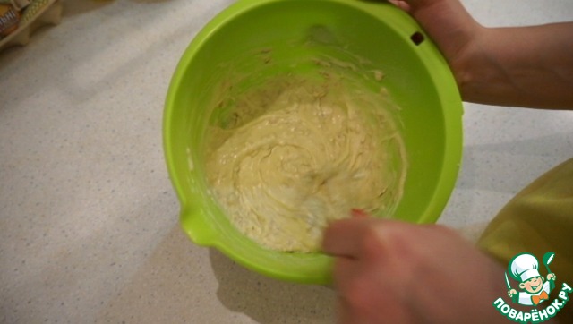 Смешиваем молоко, йогурт, масло и яйцо. Взбиваем их до однородной массы.