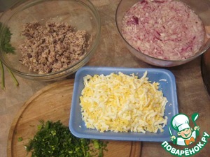 Яйца-натереть на крупную тёрку, консервы вскрыть, слить масло, размять вилкой, зелень-мелко нарубить,