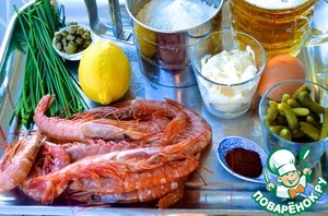 Ингредиенты для «Креветки в пивном кляре с соусом «Тар-тар»»: